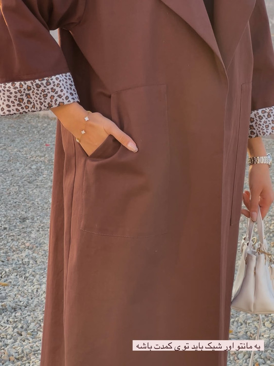 مانتو با قد ۱۳۰ سانتی متر و رنگبندی قهوهای، مشکی و سورمهای. تنخور عالی و ضمانت کیفیت پارچه و دوخت.این کار تا سایز ۴۲ اندازه است.پاکتی استین برمیگرده و ساده میشود.دارای جیب.رنگ و اندازه قابل تغییر است.